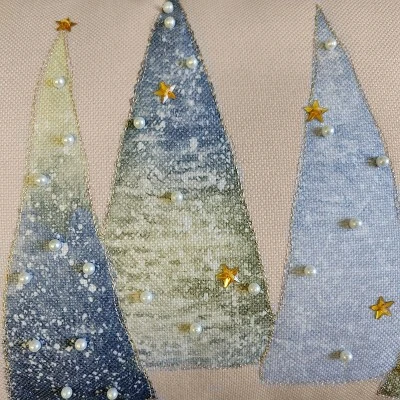14″x26″ Oversized Modern Christmas Trees With Pearls And Embroidery Lumbar Throw Pillow – Edie@Home