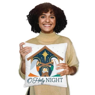 Manger Scene Pillow Cover INCLUDES 1 polyester fabric material pillowcase approximately 16 in x 16 in with a hidden zipper design. Excellent for your next Religious Christmas Party or as everyday decor. One-sided printing only; the backside of pillow cover will be white. Pillow insert not included. COZY COMFORT: Soft and comfortable, the pillow cover is gentle and made of durable material with a canvas-like texture. Fade-resistant and easy to care, the Holy Nativity pillow cover is great for home decoration and relaxation. EFFORTLESS DECOR: Elevating your home style is easier than ever. With vivid colors and polished design, the pillow cover adds harmony to your space with no fuss. It’s the perfect accent for your sofa, couch, bed, or other indoor furniture. HIGH-QUALITY: Manger Scene Pillow Cover is professionally printed on 100% polyester material. To ensure long-lasting color vibrancy, machine wash warm. Do not bleach, tumble dry, or dry clean. Warm iron inside out. PRINTED IN THE USA: Holy Nativity Home Decorative Throw Pillow Cover is designed and manufactured at our Wisconsin facility using materials that are Printed in the USA – Pillow Fabric Made in China.