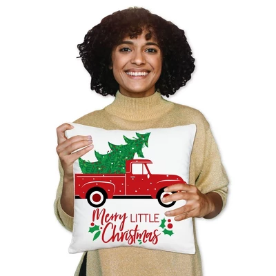 Vintage Red Christmas Truck Pillow Cover INCLUDES 1 polyester fabric material pillowcase approximately 16 in x 16 in with a hidden zipper design. Excellent for your next Holiday or Christmas Party or as everyday decor. One-sided printing only; the backside of pillow cover will be white. Pillow insert not included. COZY COMFORT: Soft and comfortable, the pillow cover is gentle and made of durable material with a canvas-like texture. Fade-resistant and easy to care, the Merry Little Christmas Tree pillow cover is great for home decoration and relaxation. EFFORTLESS DECOR: Elevating your home style is easier than ever. With vivid colors and polished design, the pillow cover adds harmony to your space with no fuss. It’s the perfect accent for your sofa, couch, bed, or other indoor furniture. HIGH-QUALITY: Vintage Red Christmas Truck Pillow Cover is professionally printed on 100% polyester material. To ensure long-lasting color vibrancy, machine wash warm. Do not bleach, tumble dry, or dry clean. Warm iron inside out. PRINTED IN THE USA: Merry Little Christmas Tree Home Decorative Throw Pillow Cover is designed and manufactured at our Wisconsin facility using materials that are Printed in the USA – Pillow Fabric Made in China.