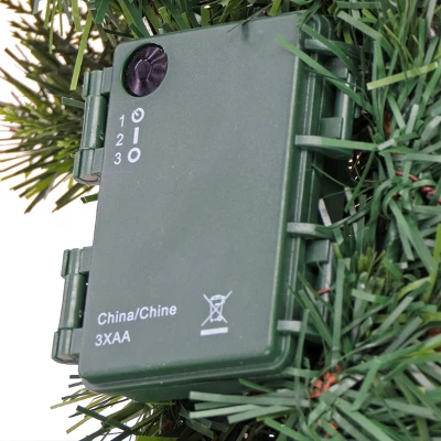 - Includes one artificial Christmas wreath with 96 branch tips and is pre-strung with 20 LED lights and measures 24″ x 24″ x 5″ – to power, install batteries into the battery pack