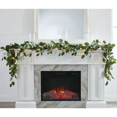 Get in the festive holiday spirit with the Pre-Lit Eucalyptus Christmas Garland Decor from Noma. The stunning garland boasts 100 realistic eucalyptus tips and 35 warm white LED bulbs, creating a cozy and natural ambiance in your home. With battery-operated lights, this decor piece allows for easy placement anywhere in your home without the need for a nearby outlet. The garland can hang on your mantle or around your banister to create a warm and welcoming atmosphere throughout the holiday season. Easy to install and with minimal maintenance required, this garland decor makes an ideal, hassle-free addition to your holiday decorating routine. The versatile design is sure to complement a wide range of decor styles, from traditional to modern. Measuring 9 feet in length, this pre-lit garland will brighten up your indoor entryway or outdoor covered porch. Add a touch of natural beauty and elevate your holiday decor with the Pre-Lit Eucalyptus Christmas Garland from Noma.